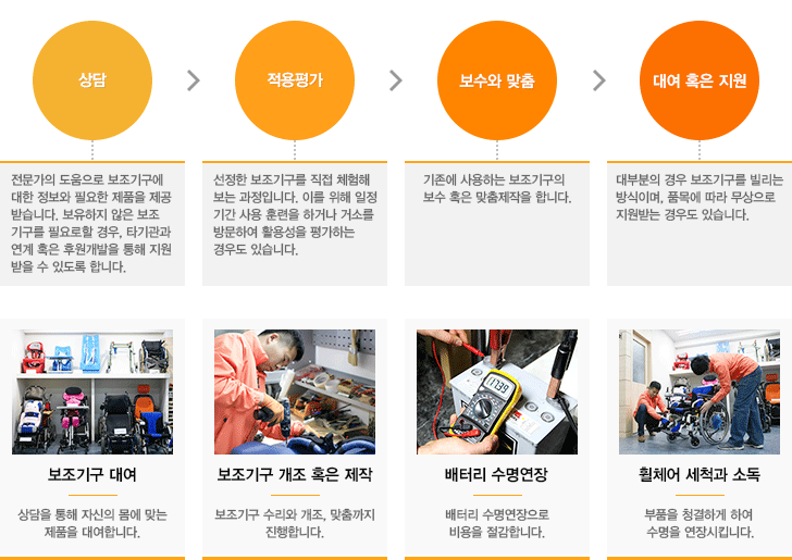 - 또한 보조기구 맞춤제작 및 개.보수, 배터리 복원과 같은 편의 서비스를 함께