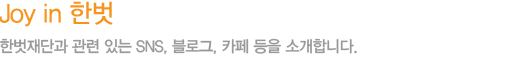 한벗장애인주간보호시설http://cafe.naver.com/hanbeot5050주요활동 : 한벗장애인주간보호시설에서 운영하는 카페입니다.